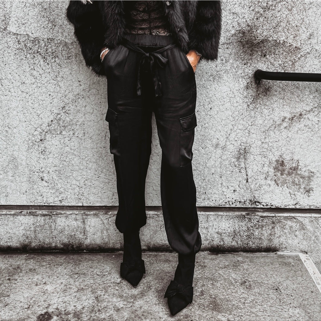 BLACK Satin cargo joggers *NEW*