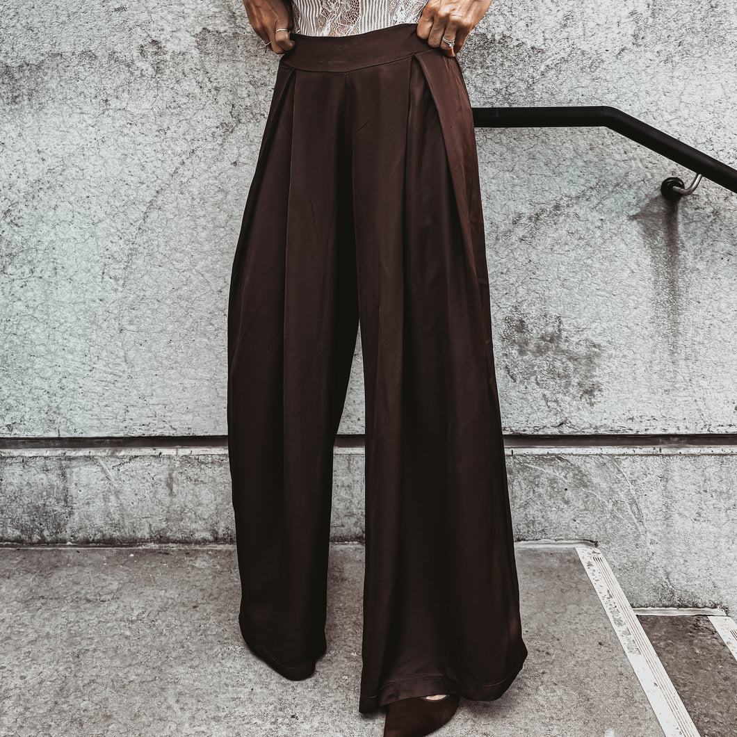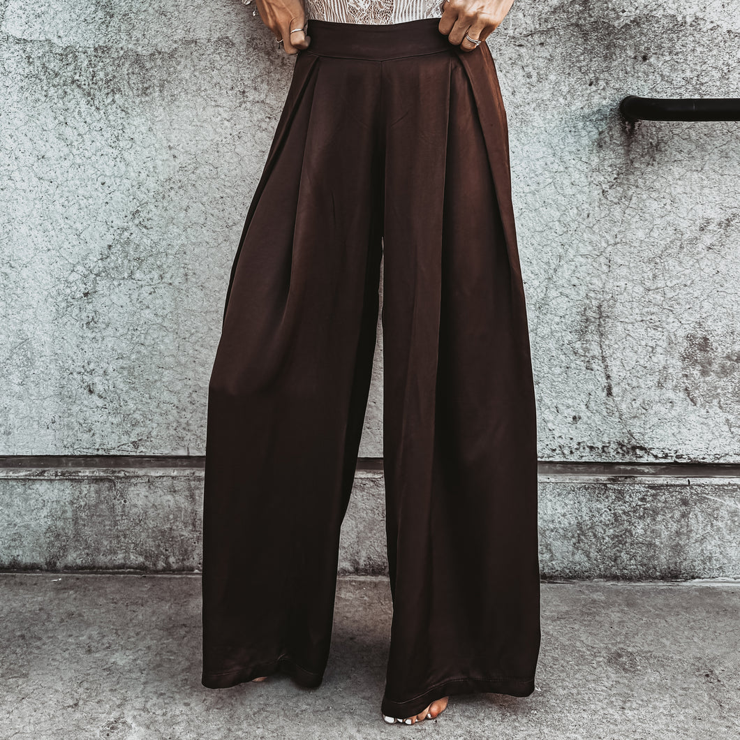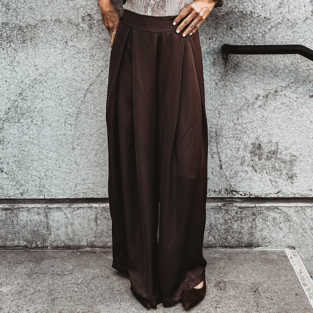 Verona BROWN satin palazzos pants *NEW*