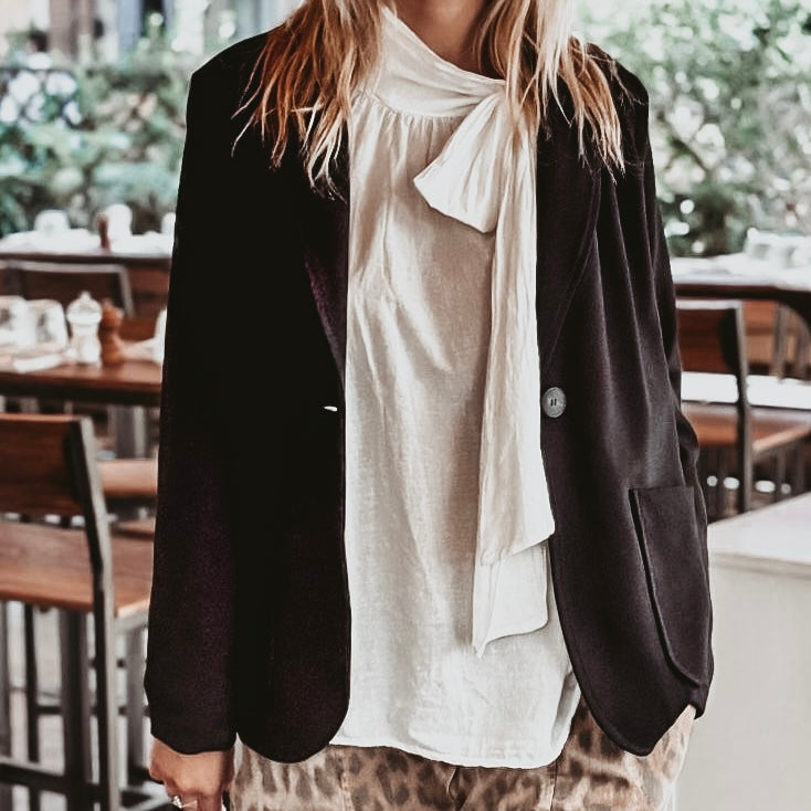 A super stylish cream blouse that will look great worn with my ultimate joggers or jeans for a smarter day or evening look. Hangs beautifully. Wear tucked in or out. Perfect for nights out on holiday.