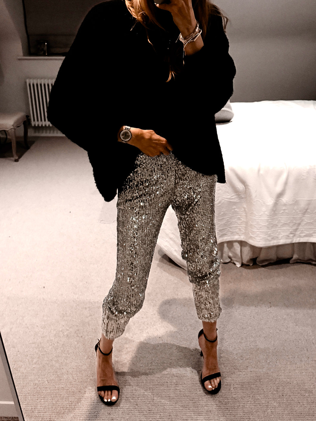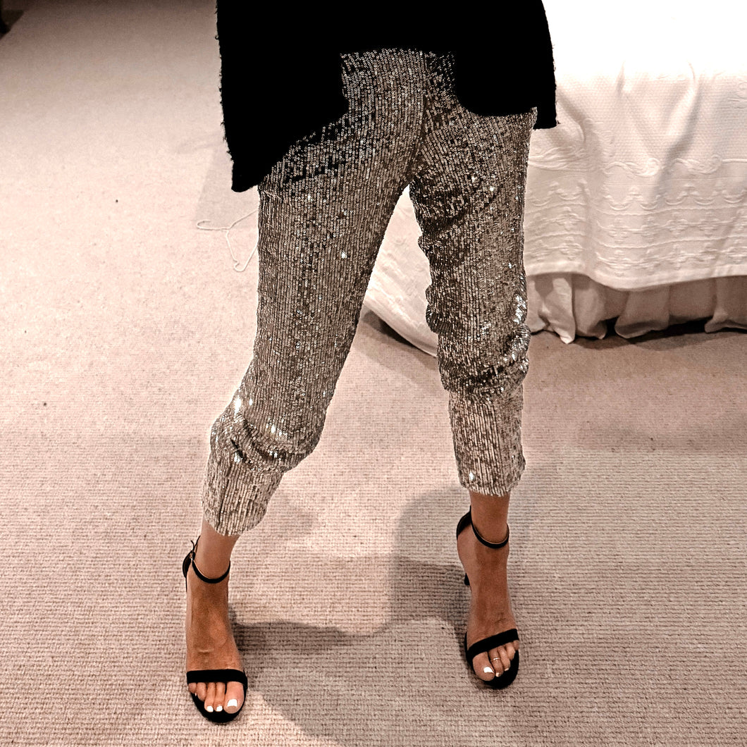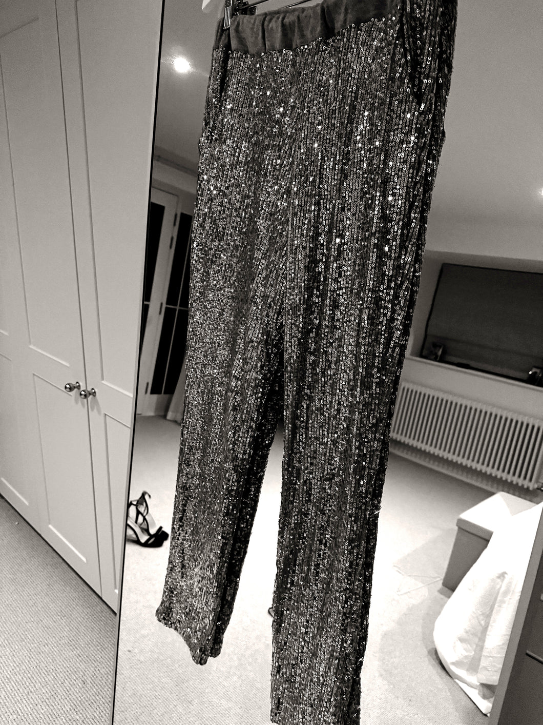 NEW! Stunning sequin stretchy pants, perfect for parties, festivals and holidays! Super sparkly, with pockets and an elastic waist. Pull them up on your calfs and add heels for going out. Or dress down with trainers and a tee.