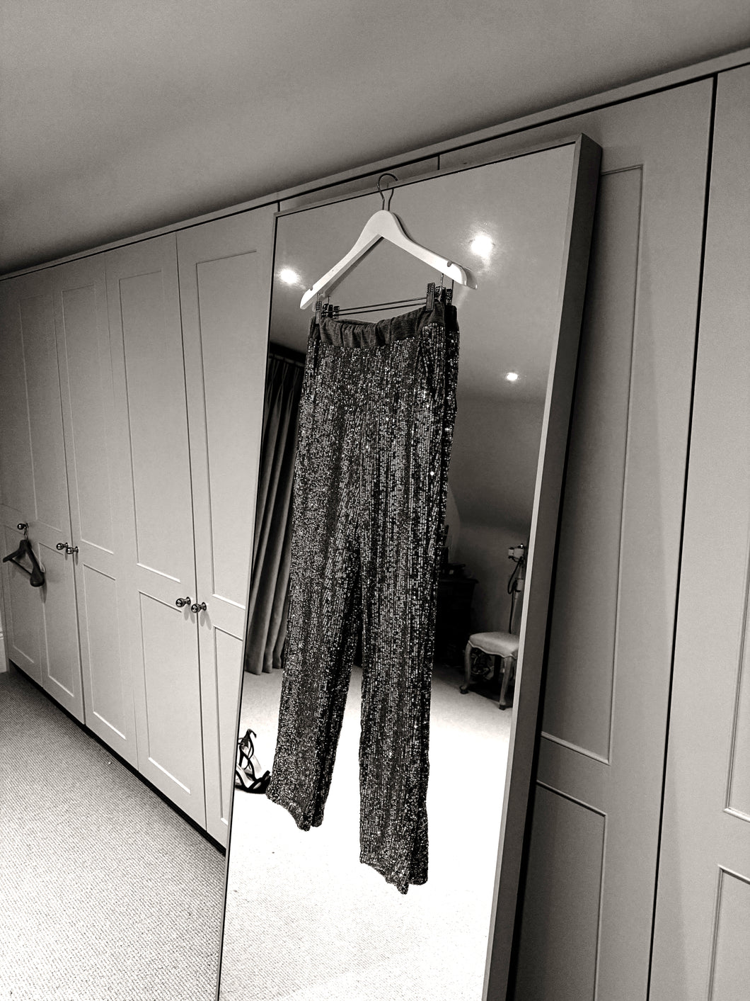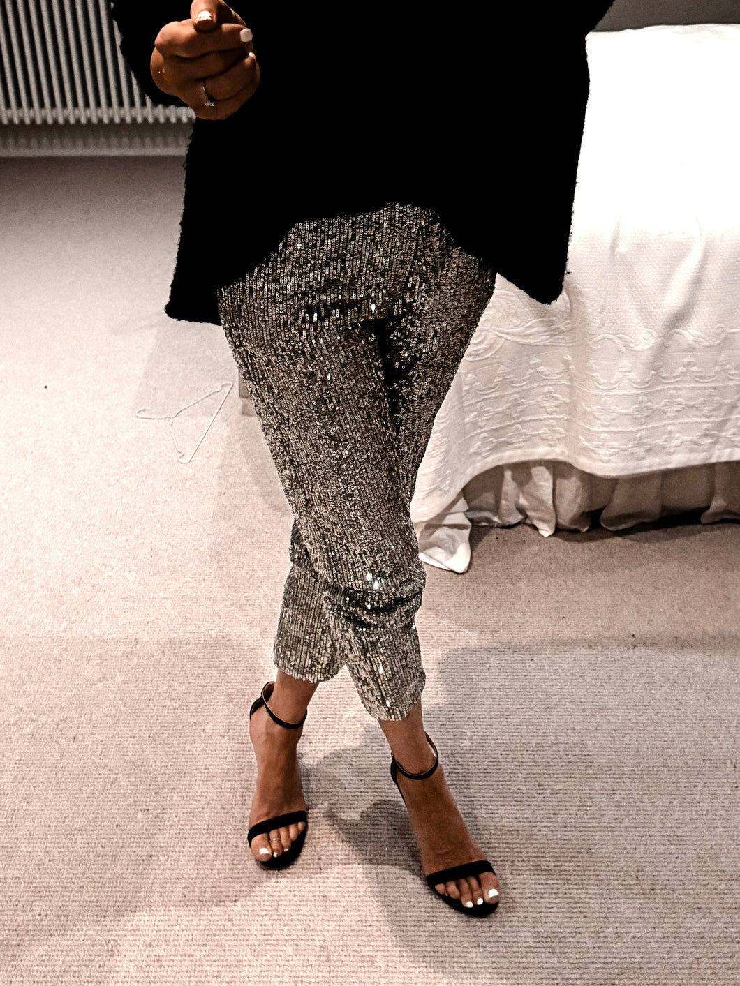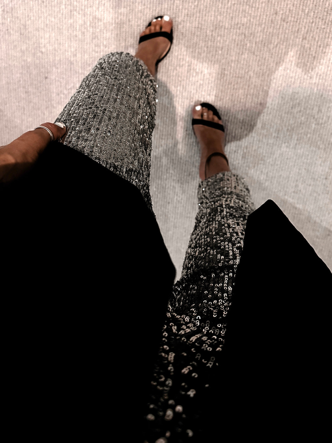 NEW! Stunning sequin stretchy pants, perfect for parties, festivals and holidays! Super sparkly, with pockets and an elastic waist. Pull them up on your calfs and add heels for going out. Or dress down with trainers and a tee.