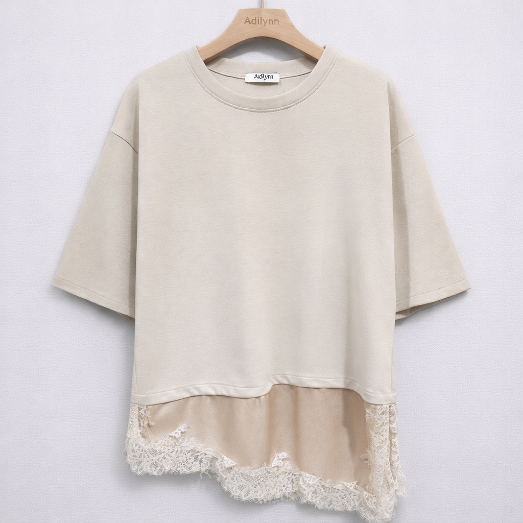 BEIGE Lara Lace asymmetric tee *NEW*