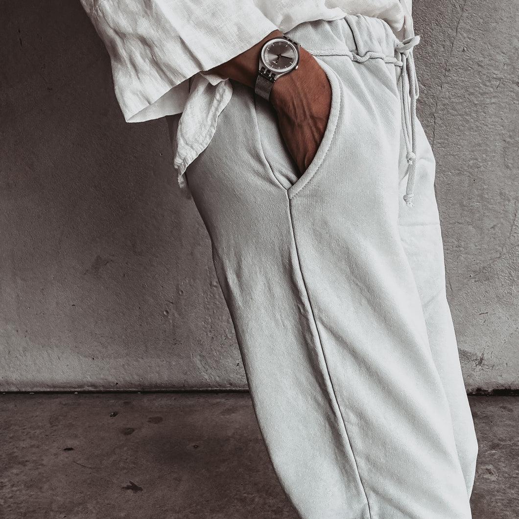 Traditional jogger style with elastic waist & tie bow, gorgeous deep pockets and we loved the slight cropped length. we are obsessed! Perfect for spring and summer with trainers or flipflops, just add a tee, blouse or blazer. Wear in the winter too with a chunky knit and boots.